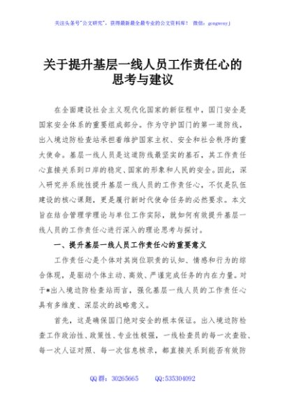/ 关于提升基层一线人员工作责任心的思考与建议