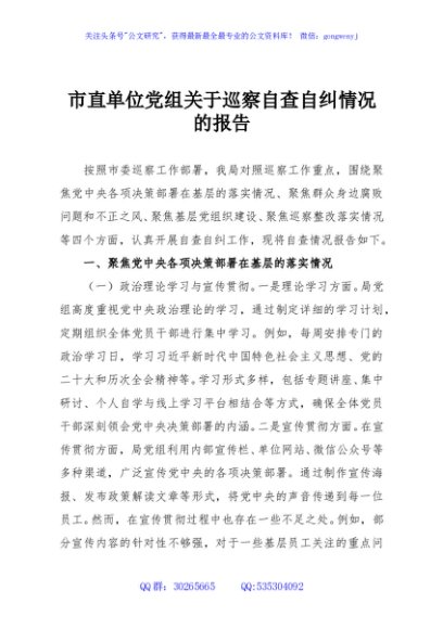 / 市直单位党组关于巡察自查自纠情况的报告