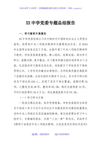 / XX中学党委专题总结报告