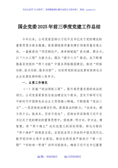 / 国企党委2025年前三季度党建工作总结