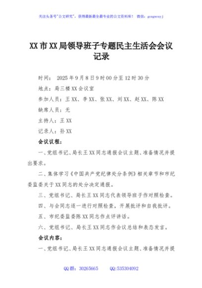 / XX市XX局领导班子专题民主生活会会议记录