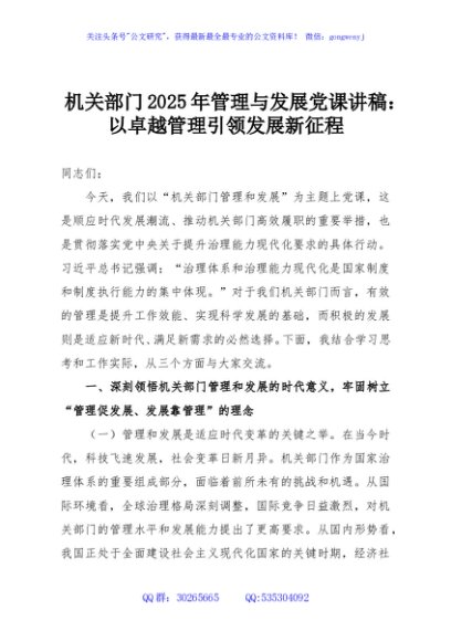 / 机关部门2025年管理与发展党课讲稿:以卓越管理引领发展新征程