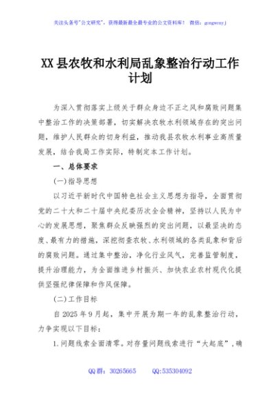 / XX县农牧和水利局乱象整治行动工作计划