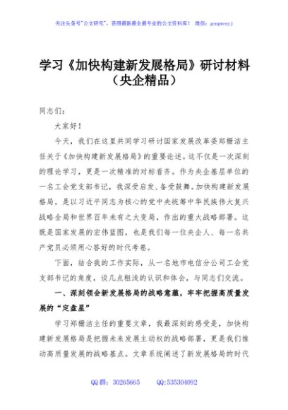 / 学习《加快构建新发展格局》研讨材料(央企精品)