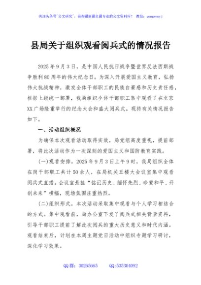 / 县局关于组织观看阅兵式的情况报告