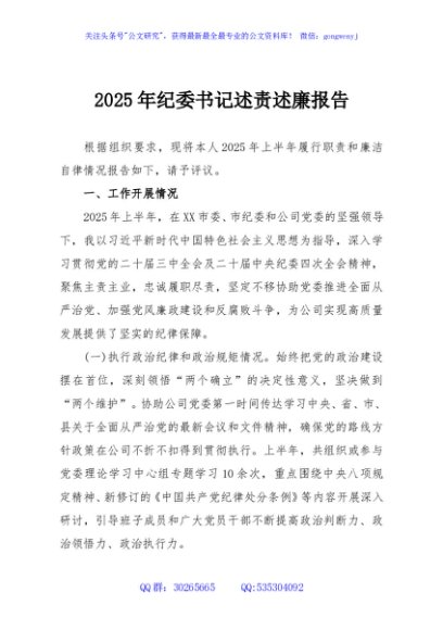 / 2025年纪委书记述责述廉报告