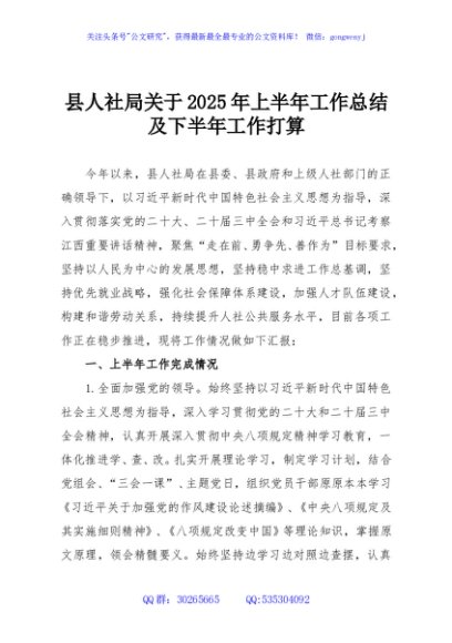 / 县人社局关于2025年上半年工作总结及下半年工作打算