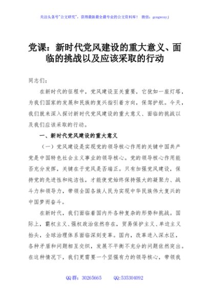 / 党课:新时代党风建设的重大意义、面临的挑战以及应该采取的行动