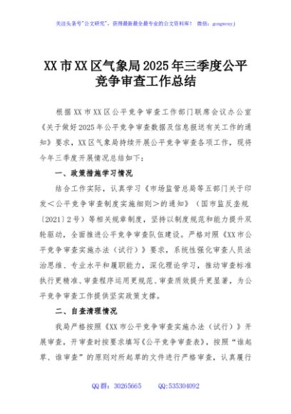 / XX市XX区气象局2025年三季度公平竞争审查工作总结
