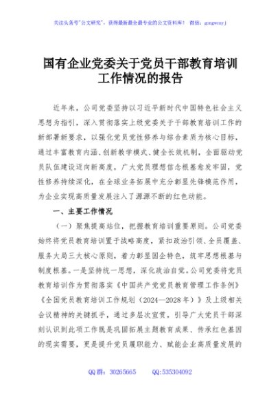 / 国有企业党委关于党员干部教育培训工作情况的报告