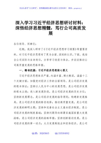 / 深入学习习近平经济思想研讨材料:深悟经济思想精髓,笃行公司高质发展