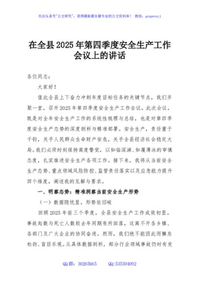 / 在全县2025年第四季度安全生产工作会议上的讲话