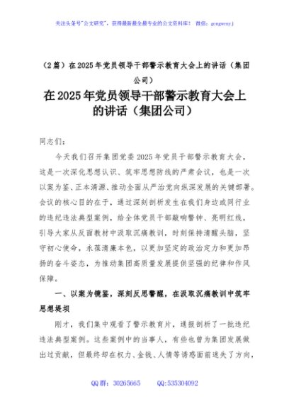 / (2篇)在2025年党员领导干部警示教育大会上的讲话(集团公司)
