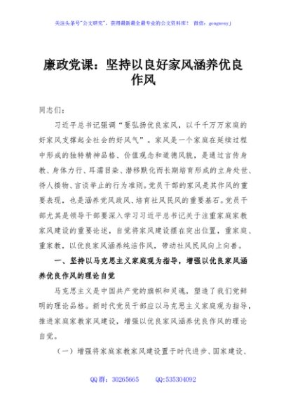 / 廉政党课:坚持以良好家风涵养优良作风