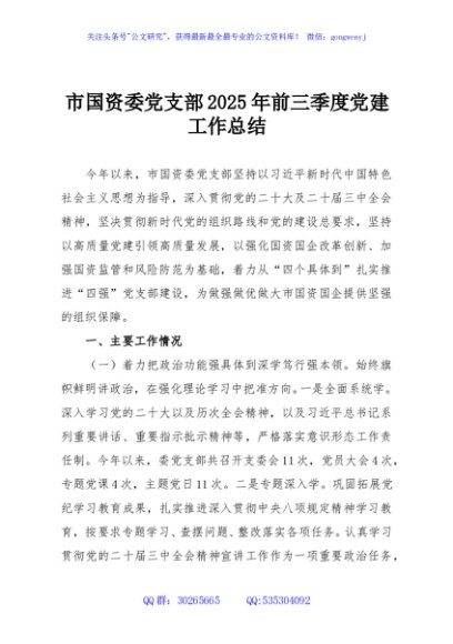 / 市国资委党支部2025年前三季度党建工作总结
