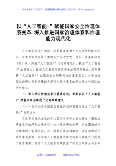 / 以“人工智能+”赋能国家安全治理体系变革 深入推进国家治理体系和治理能力现代化