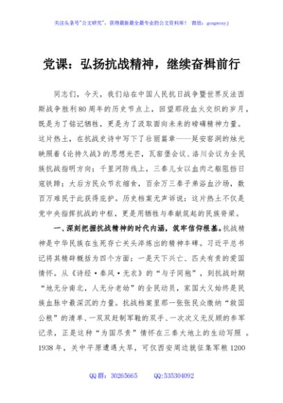 / 党课:弘扬抗战精神,继续奋楫前行