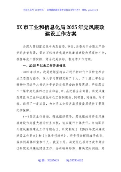 / XX市工业和信息化局2025年党风廉政建设工作方案