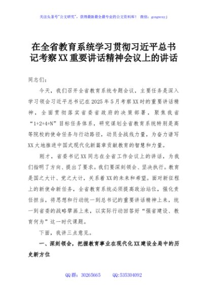 / 在全省教育系统学习贯彻习近平总书记考察XX重要讲话精神会议上的讲话
