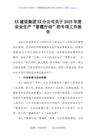 / XX建设集团XX分公司关于2025年度安全生产“雷霆行动”的专项工作报告