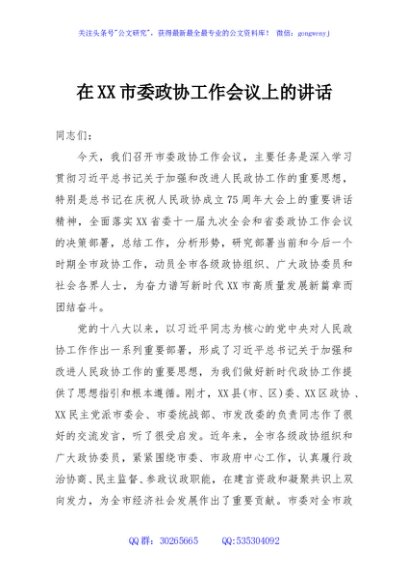 / 在XX市委政协工作会议上的讲话