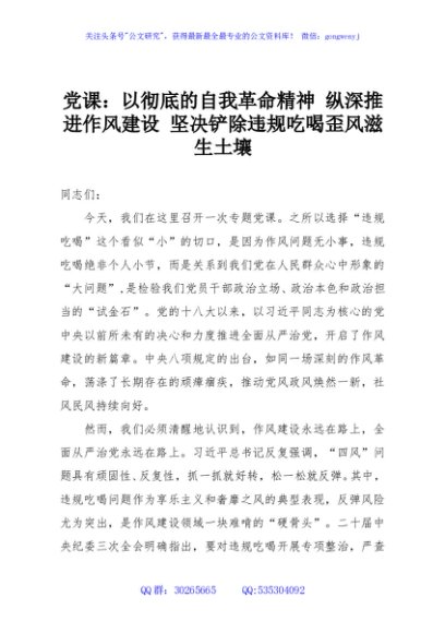/ 党课:以彻底的自我革命精神 纵深推进作风建设 坚决铲除违规吃喝歪风滋生土壤