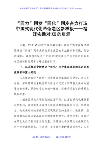 / “四力”同发“四化”同步奋力打造中国式现代化革命老区新样板——宿迁实践对XX的启示