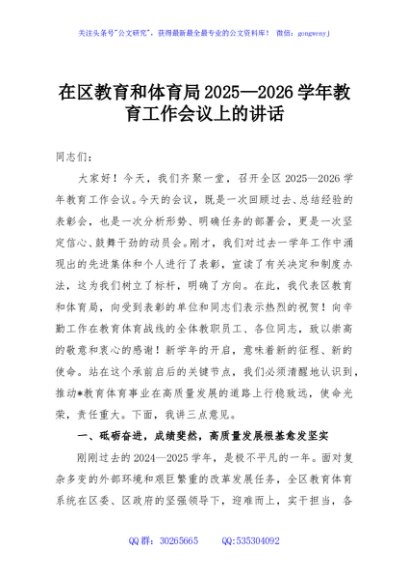 / 在区教育和体育局2025—2026学年教育工作会议上的讲话