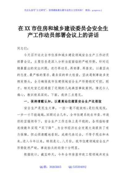 / 在XX市住房和城乡建设委员会安全生产工作动员部署会议上的讲话