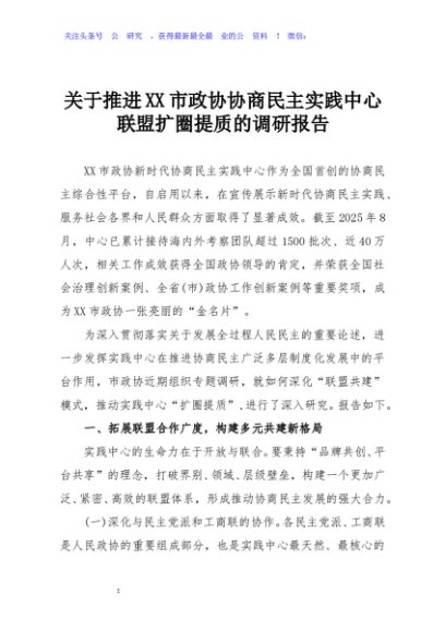 / 关于推进XX市政协协商民主实践中心联盟扩圈提质的调研报告