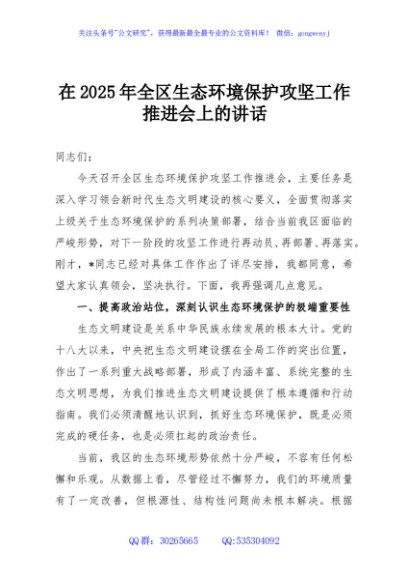 / 在2025年全区生态环境保护攻坚工作推进会上的讲话