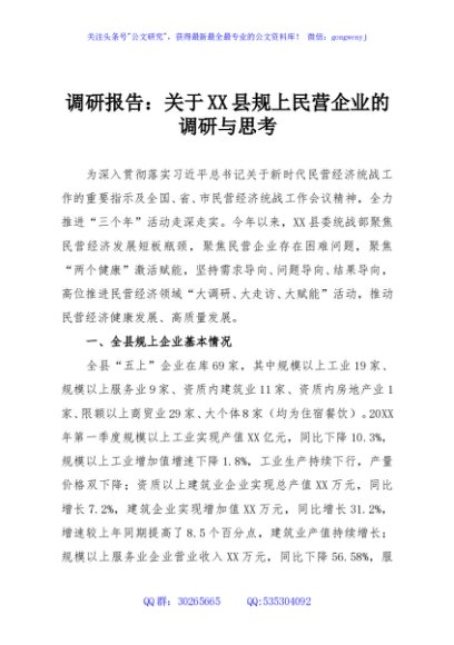 / 调研报告:关于XX县规上民营企业的调研与思考