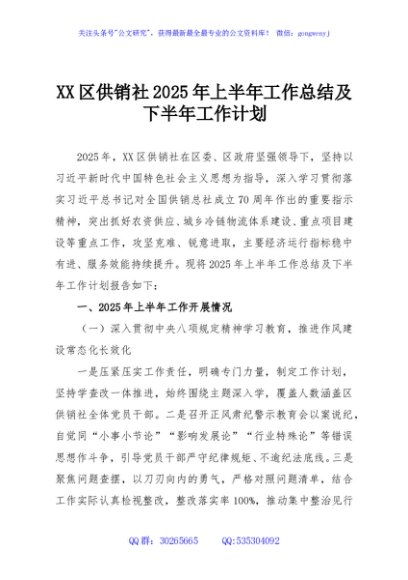 / XX区供销社2025年上半年工作总结及下半年工作计划