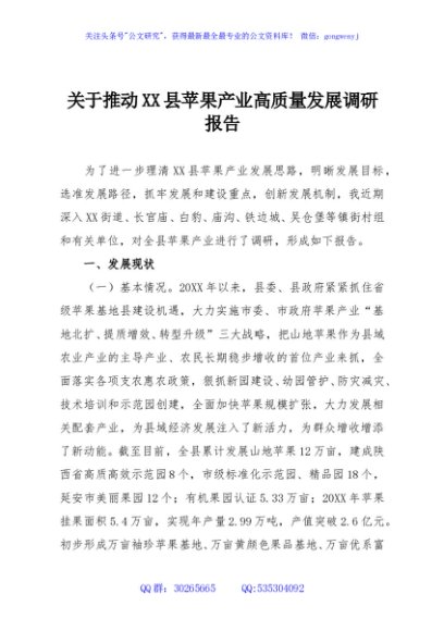 / 关于推动XX县苹果产业高质量发展调研报告