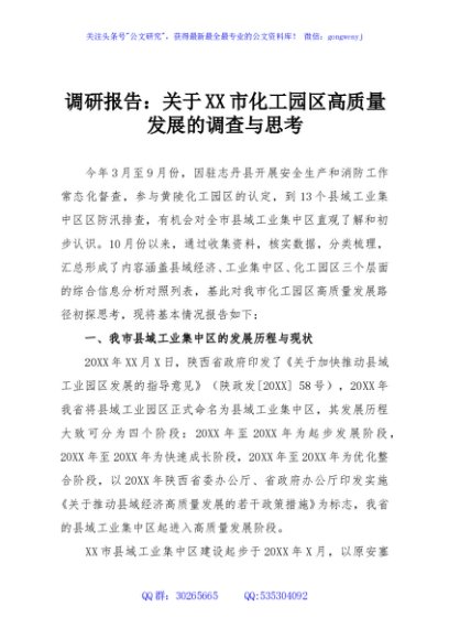 / 调研报告:关于XX市化工园区高质量发展的调查与思考