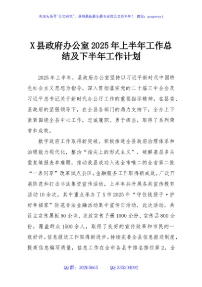 / X县政府办公室2025年上半年工作总结及下半年工作计划