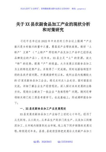 / 关于XX县农副食品加工产业的现状分析和对策研究