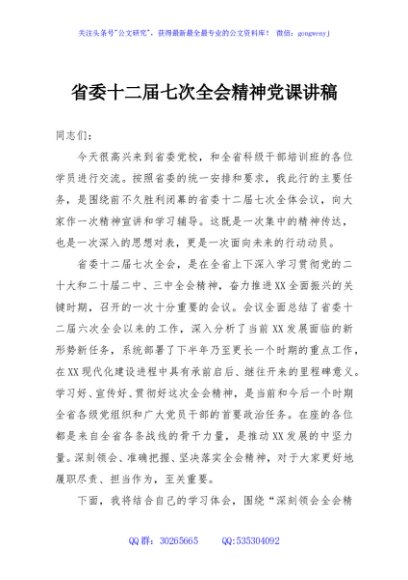 / 省委十二届七次全会精神党课讲稿