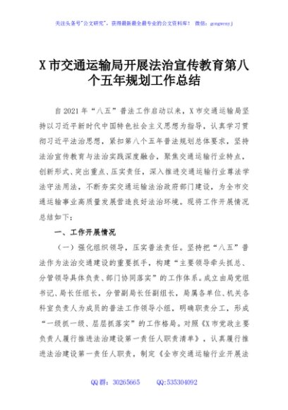 / X市交通运输局开展法治宣传教育第八个五年规划工作总结