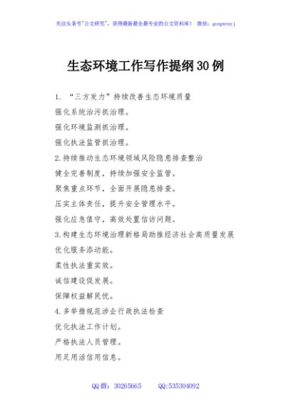 / 生态环境工作写作提纲30例