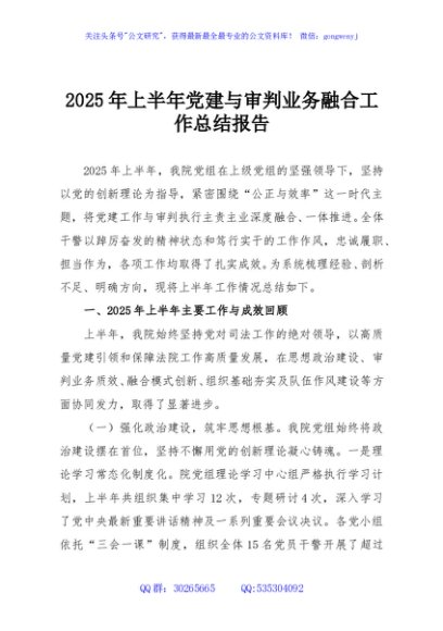 / 2025年上半年党建与审判业务融合工作总结报告