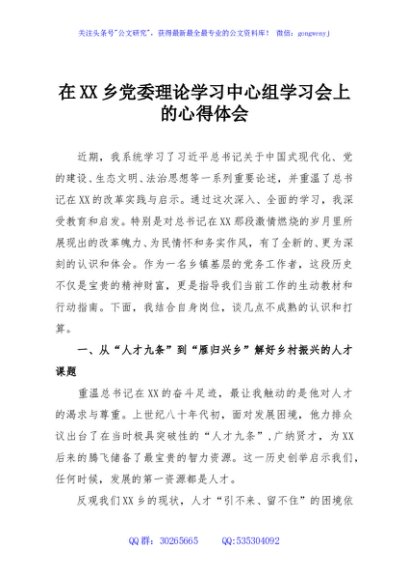 / 在XX乡党委理论学习中心组学习会上的心得体会