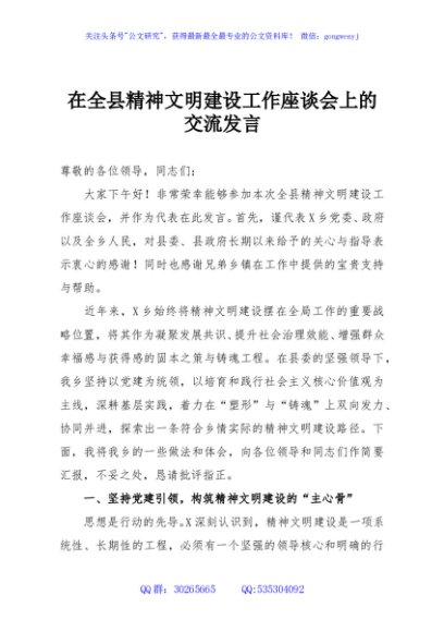 / 在全县精神文明建设工作座谈会上的交流发言