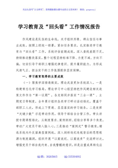 / 学习教育及“回头看”工作情况报告