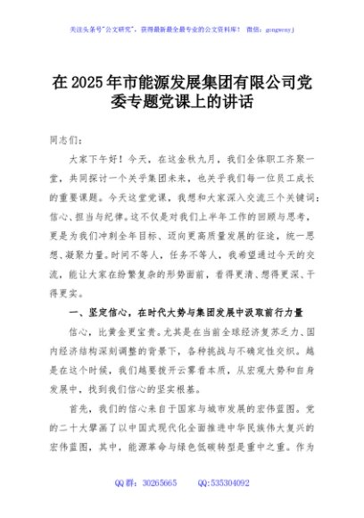 / 在2025年市能源发展集团有限公司党委专题党课上的讲话