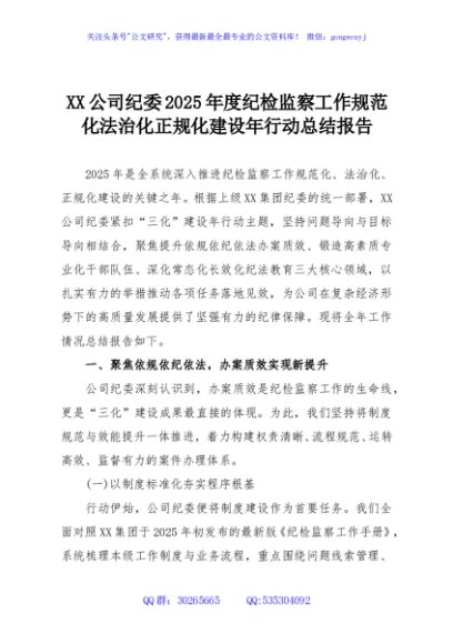 / XX公司纪委2025年度纪检监察工作规范化法治化正规化建设年行动总结报告