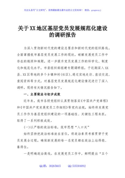 / 关于XX地区基层党员发展规范化建设的调研报告