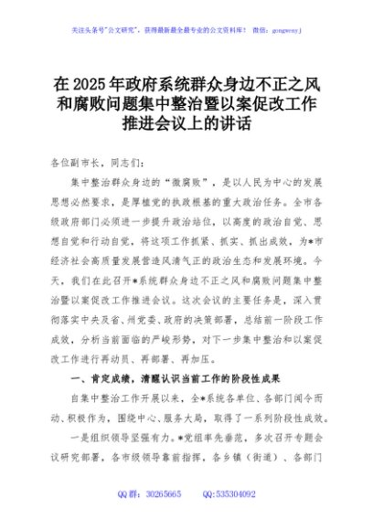 / 在2025年政府系统群众身边不正之风和腐败问题集中整治暨以案促改工作推进会议上的讲话