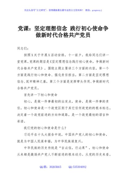 / 党课:坚定理想信念 践行初心使命争做新时代合格共产党员