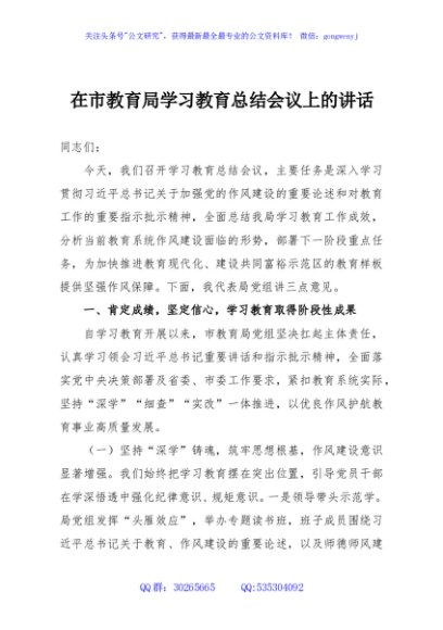 / 在市教育局学习教育总结会议上的讲话